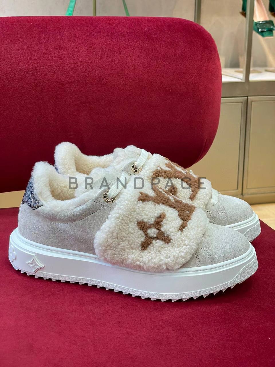 Эта модель объединяет в себе элегантность и практичность, присущие бренду Louis Vuitton. Бело-бежевые оттенки подчеркивают утонченность, а сочетание замши и текстиля обеспечивает легкость и долговечность. Внутренний мех дарит уют и тепло в прохладные дни, создавая ощущение комфорта без ущерба стилю.