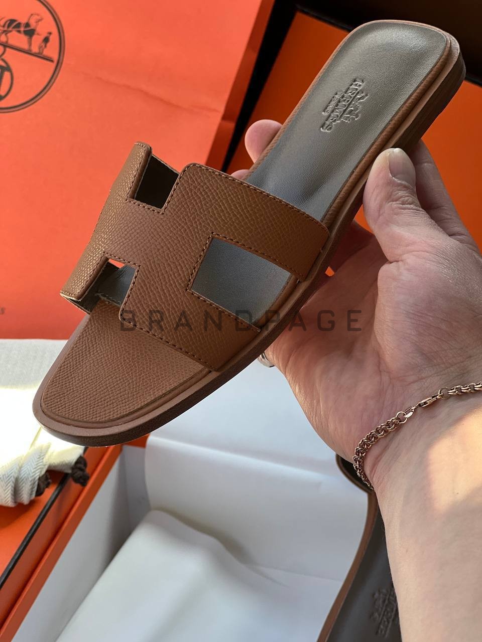 Кожаные шлёпанцы Hermes — купить в интернет-магазине люкс